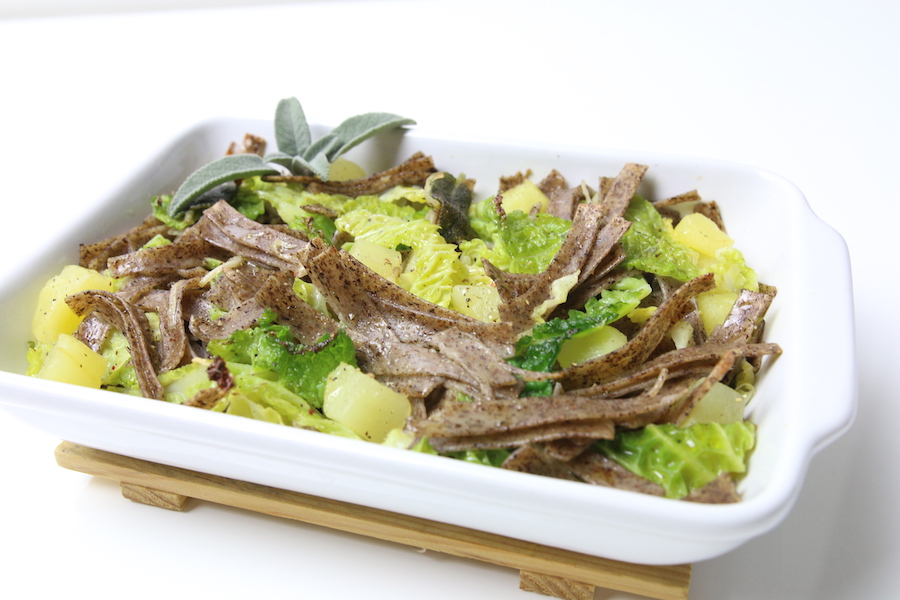 “ I Pizzoccheri sono un formato di pasta particolare, molto saporito, l’impasto è preparato con due terzi di farina di grano saraceno ed un terzo di farina di frumento.”